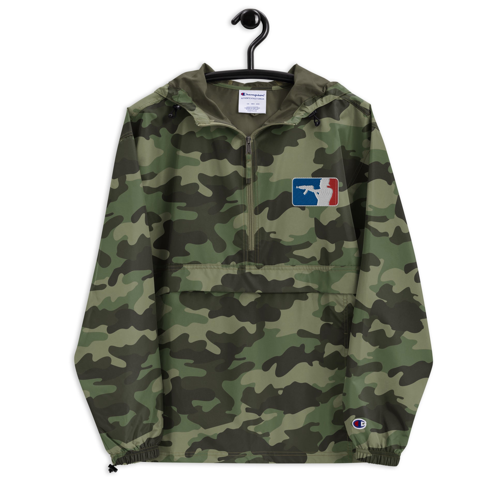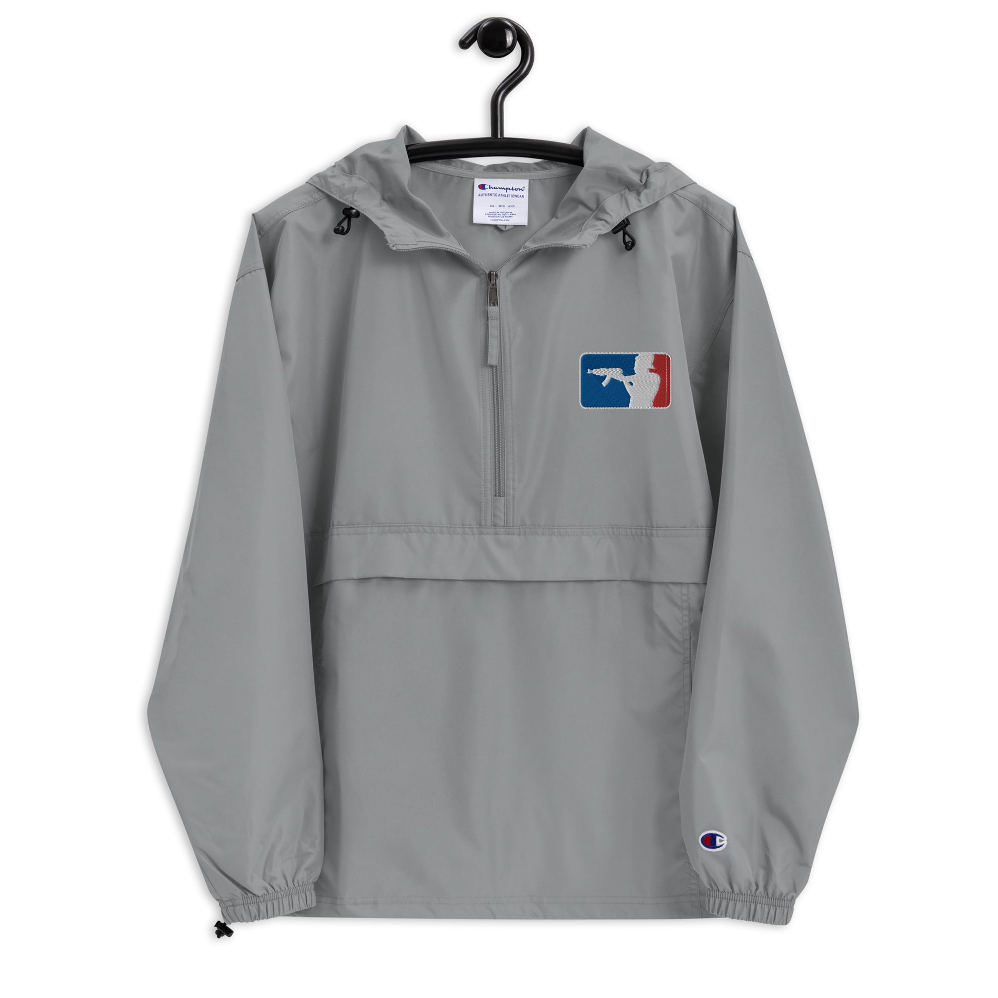 Protect yourself from the elements with this Champion packable jacket. This wind and rain resistant polyester jacket with a detailed embroidery design has a practical hood, front kangaroo pocket, and zipped pouch pocket which you can pull out and use to scrunch the jacket into for convenient storage.
